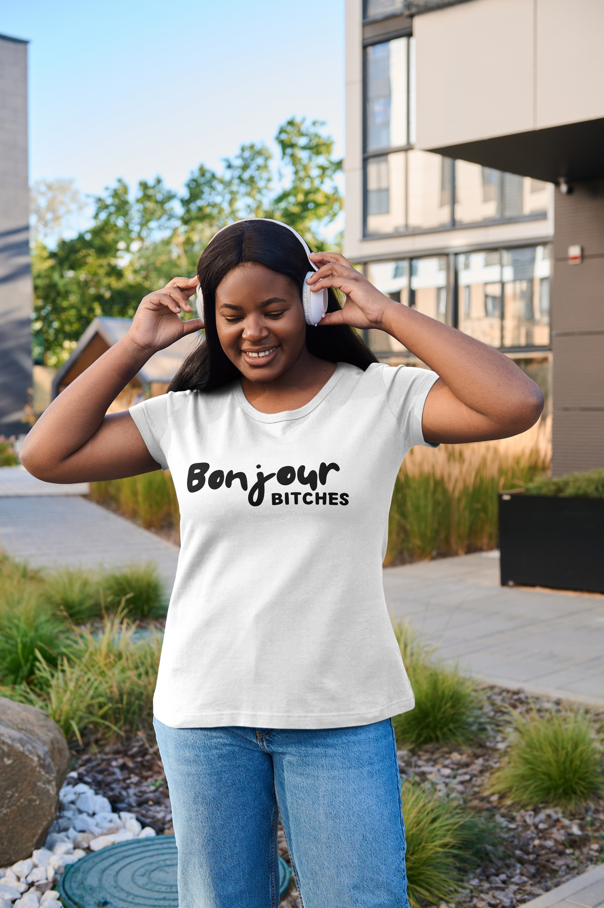 Crafted from high-quality, comfortable fabric, this tee is as cozy as it is fun. Whether you're embracing your inner fashion rebel or just want to share a laugh with the world, our "Bonjour Bitches" T-shirt has got you covered. It's a witty and lighthearted way to make a statement and greet the day with a touch of attitude. So go ahead, rock this playful tee and let your inner sass shine!