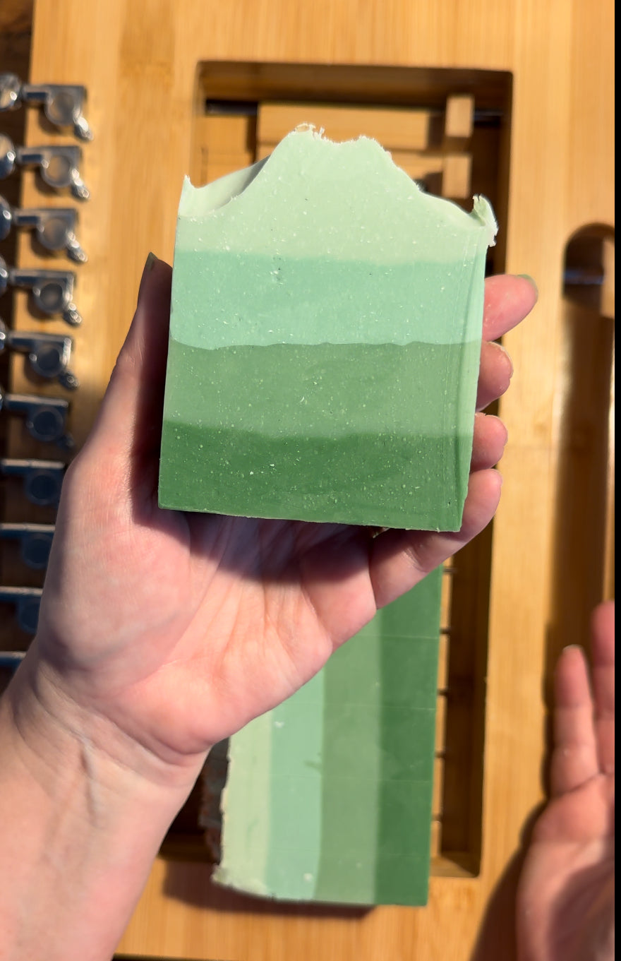 Olive Oil, Coconut Oil, Sodium Hydroxide Lye, Shea Butter, Cocoa Butter, Distilled Water, Avocado Butter, Babassu Oil, Castor Oil, Titanium Dioxide, Fragrance Oil, Sodium Lactate, Sea Clay, Kaolin Clay, Sunflower Oil, Hydrated Chrome Green Pigment, Green Chrome Oxide Pigment, Pink Sea Salt